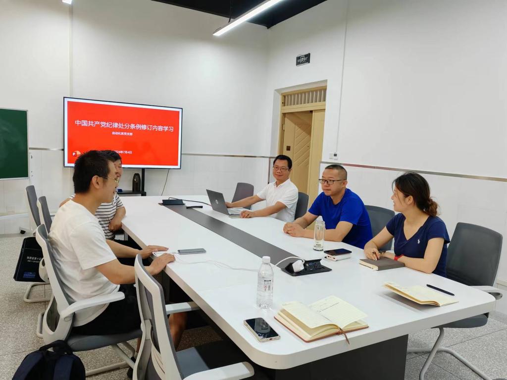 自动化系党支部在系部会议室开展了党纪学习教育专题会议,自动化系党支部全体党员教师参加会议,会议由支部书记靳引利主持。