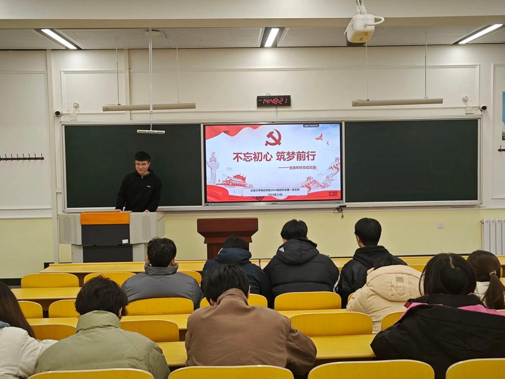 2024级研究生第一党支部于南校区北院B271教室开展“不忘初心 筑梦前行”主题党日活动暨年终交流总结会议。研究生辅导员王佩佩及支部全体党员参加活动,活动由党支部书记张兴浩主持。