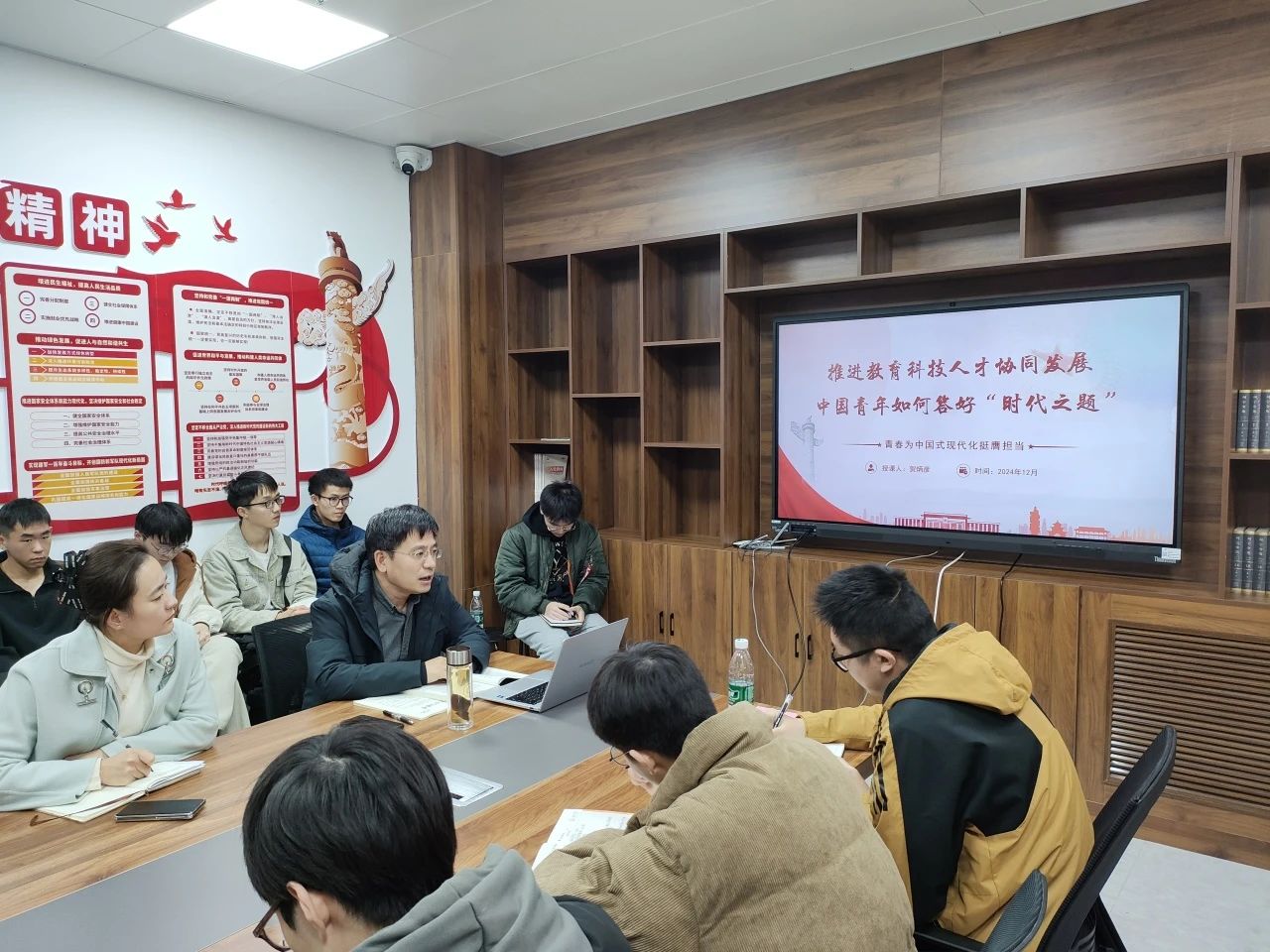 为引导支部党员提高政治觉悟,积极投身国家发展大局,为实现教育强国目标贡献力量,无修动漫 卓越本科生党支部于12月4日在327会议室开展专题学习会议,邀请学院党委书记贺炳彦讲授题为“推进教育科技人才协同发展 中国青年如何答好‘时代之题’”的专题党课,学院党委副书记高婷婷、党支部书记张馨月、党支部副书记刘平利及全体党员参会。