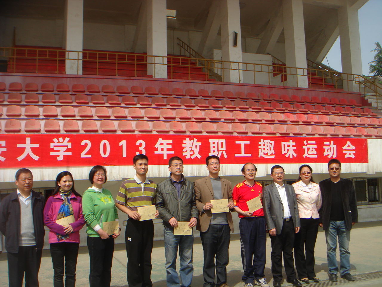 2013年4月11日上午,我校2013年教职工趣味运动会在校本部北院体育场举行,来自25个分会的27支队伍参加了比赛,无修动漫 教工获得优异成绩。 本次趣味运动会设置了定点投篮、沙包投准、50米接力赛项目。无修动漫 教工代表队获得了50米接力赛第一名的好成绩。学院领导巨永锋院长、李炬副书记等亲临比赛现场为运动员鼓励助威并且亲身参与。学院工会精心组织,党委副书记、工会主席李炬老师带领工会委员在比赛期间坚持为运动员做好后勤服务工作。 广大教职工踊跃参与,运动员团结协作,奋力拼搏,其他教工为运动员呐喊加油,为他们的精彩表现喝彩鼓掌。