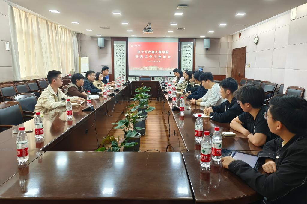 座谈会上,院研究生会和研科协主席团成员对上一学年的工作进行了总结,分享了本学年的工作设想和举措,汇报了目前工作中存在的问题和困难;研究生新生骨干代表分享了自己的入学感受,反馈了新生在学习生活中所关注的问题。与会老师针对同学们提出的问题给出了具体意见和解决方案,并围绕党建引领、班团建设、学术科研、科创竞赛等方面展开深入讨论。