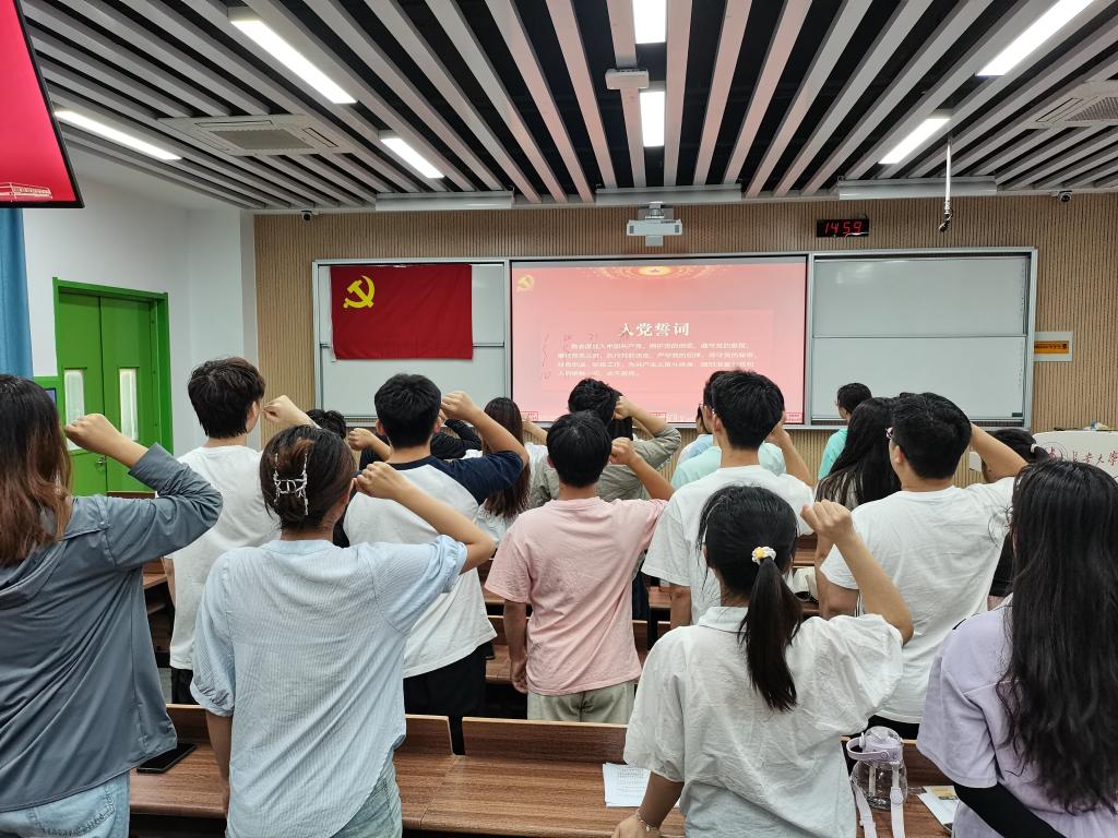铿锵有力的誓词号召党员同志们,要坚持以习近平新时代中国特色社会主义思想为指导,时刻牢记党员身份,深刻领悟“两个确立”的决定性意义,增强“四个意识”、坚定“四个自信”、做到“两个维护”,自觉做到学纪、知纪、明纪、守纪,争做有理想、敢担当、能吃苦、肯奋斗的新时代好青年,在推进强国建设、民族复兴伟业中展现青春作为、彰显青春风采、贡献青春力量,奋力书写为中国式现代化挺膺担当的青春篇章。