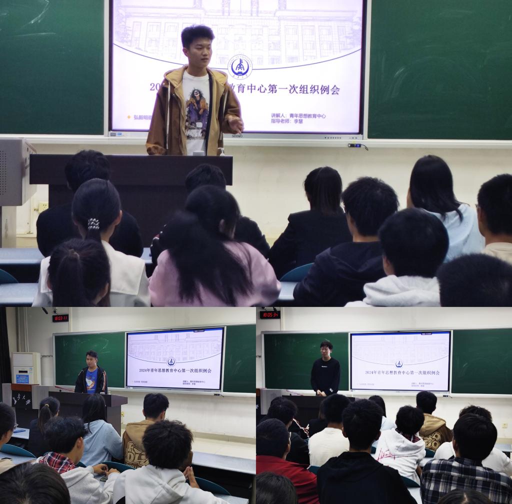 青年思想教育中心主任王昱宸对上学年工作进行总结,肯定了青思全体成员的努力与付出,并安排部署了本学期的重点工作。副主任梁文起介绍了长安之声演讲比赛的具体形式及准备工作,鼓励大家积极宣传。副主任刘作禹对新学年青马班的组织架构、培养目标及工作安排进行了详细说明。
