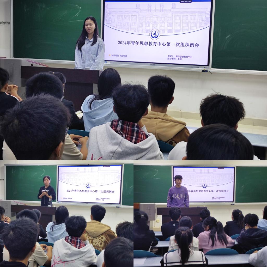 青年思想教育中心在北校区WM1102教室召开2024-2025学年第一次全体例会。青年思想教育中心指导老师李慧及全体成员参加会议,会议由唐紫妍主持。