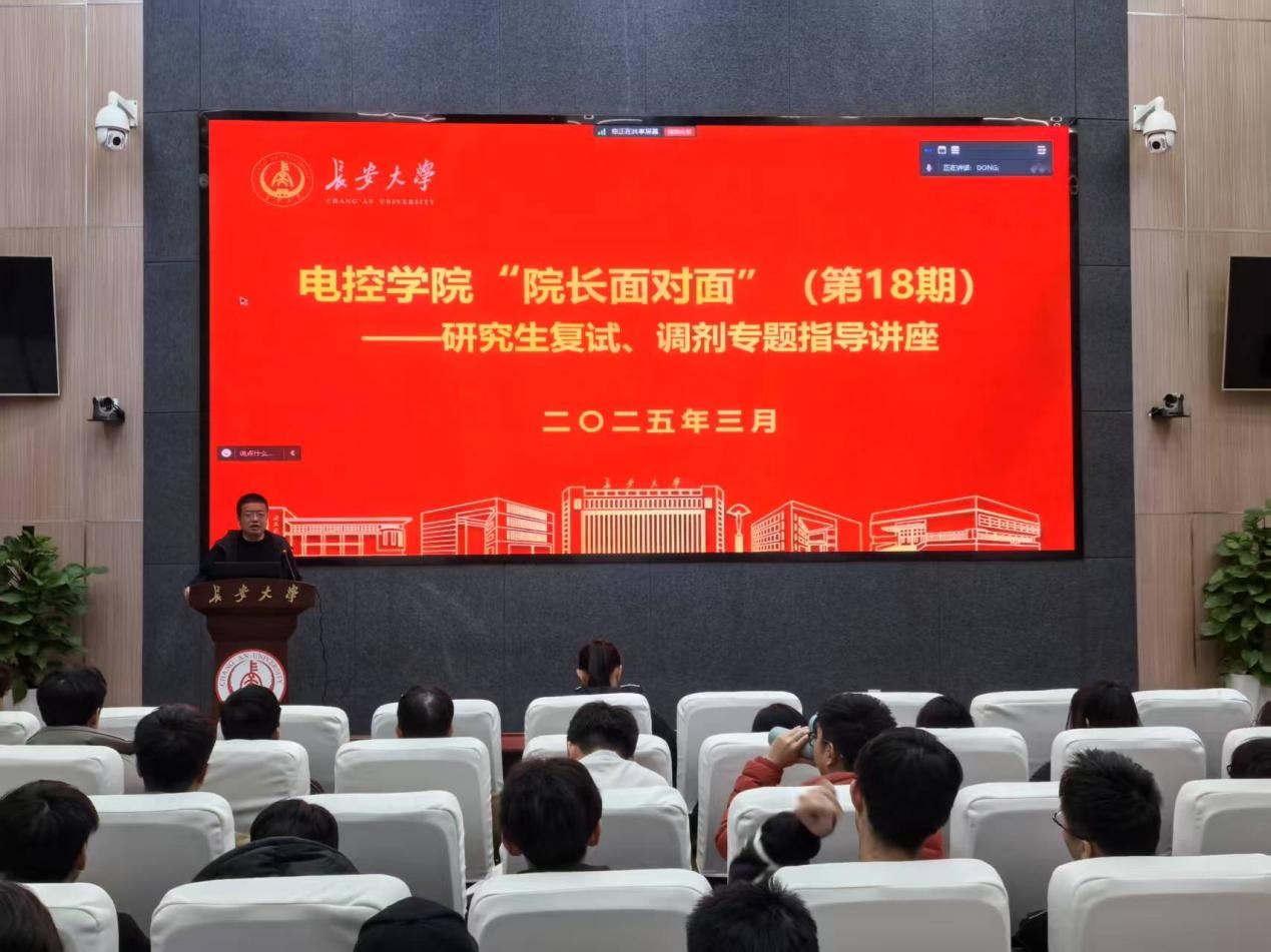 在北校区师生服务大厅第二报告厅召开“院长面对面”(第18期)—研究生复试、调剂专题指导讲座。院长闫茂德做专题指导,院党委副书记高婷婷、学办主任刘平利、毕业班辅导员张馨月和2025届考研学生共同参会。
