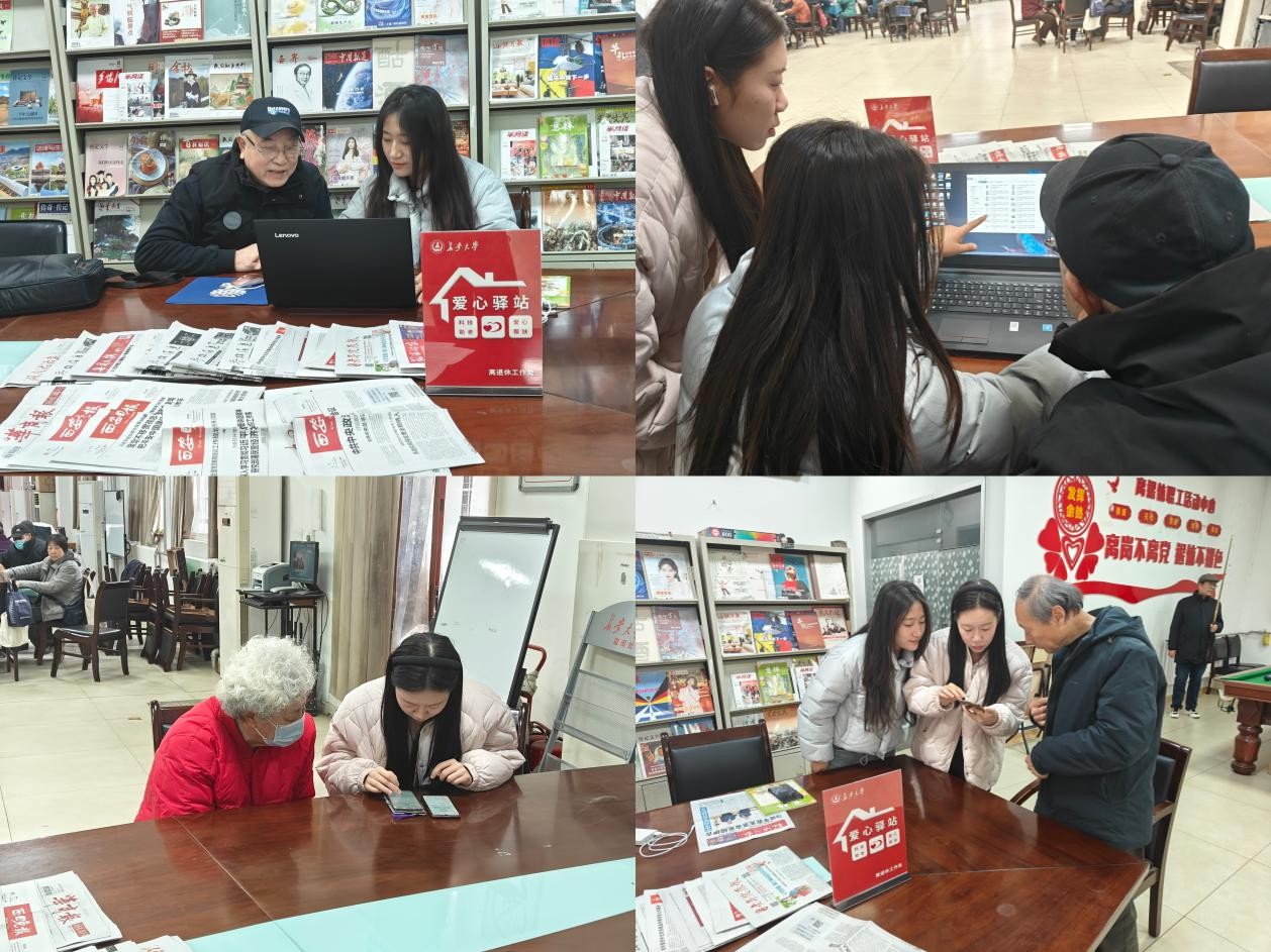 、建工学院、机械学院研究生会在长安路住宅区活动室、雁塔校区活动室和崇业路住宅区活动室开展每周一次的“爱心驿站”志愿服务活动,全力助推离退休老教师跨越数字鸿沟,畅享智慧生活。
