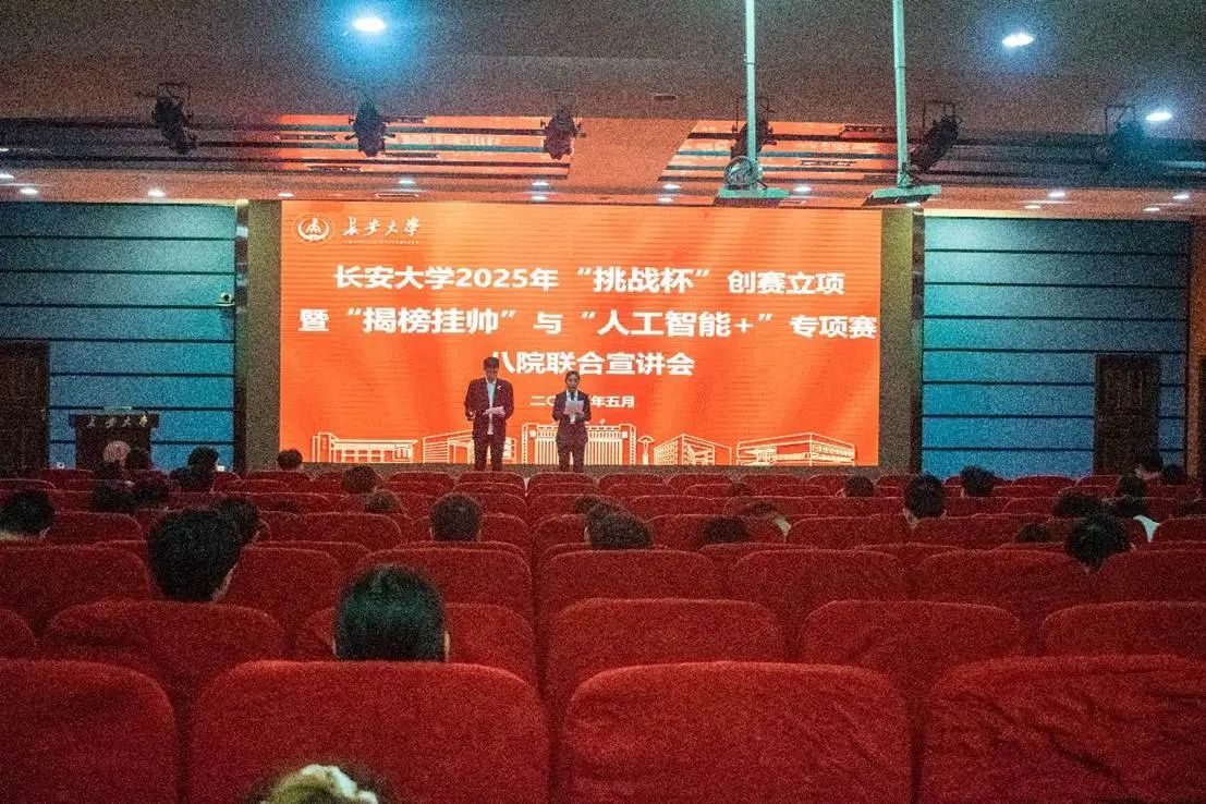 、汽车学院、地测学院、信息学院、机械学院、外国语学院、未来交通学院和人文学院八院联合主办的2025“挑战杯”创赛立项暨“揭榜挂帅”与“人工智能+”专项赛宣讲会在北辰楼会议中心二层报告厅顺利举行,本次宣讲会由曹浩洋、曾诗琪主持。