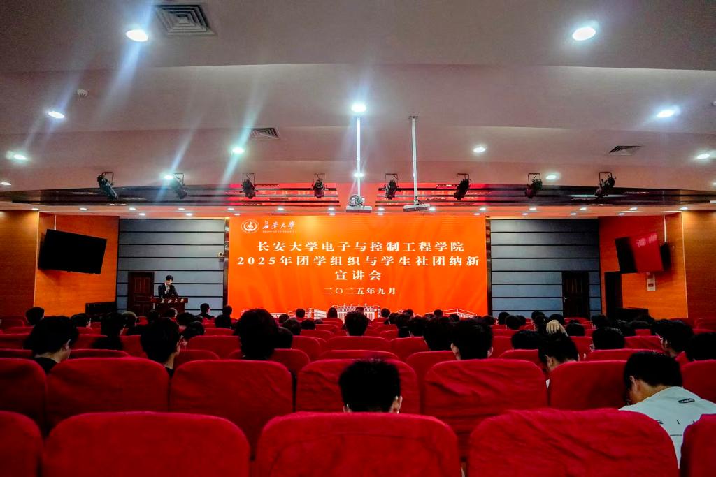 2025年团学组织与学生社团纳新宣讲会在北辰楼会议中心二楼报告厅举行。学院团委副书记胡佳瑞,2025级新生辅导员孙超、吴耀东,团学组织与学生社团主席,2025级本科新生参加会议,会议由学院学生会执行主席张子涵主持。