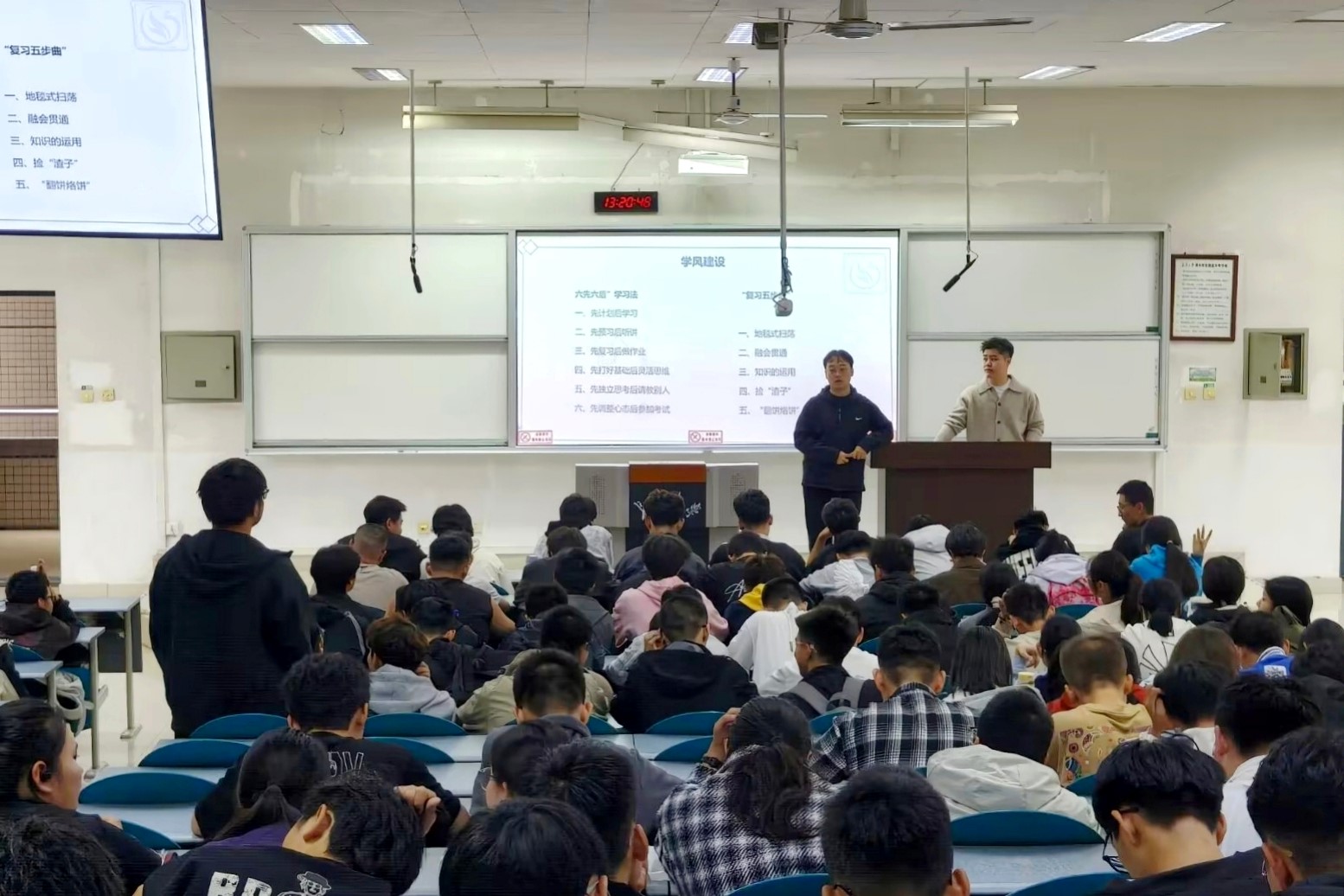 在WM1201教室顺利开展了2025级新生学风建设主题班会。本次班会由2025级本科生辅导员吴耀东、孙超共同主持,全体2025级本科生参与。