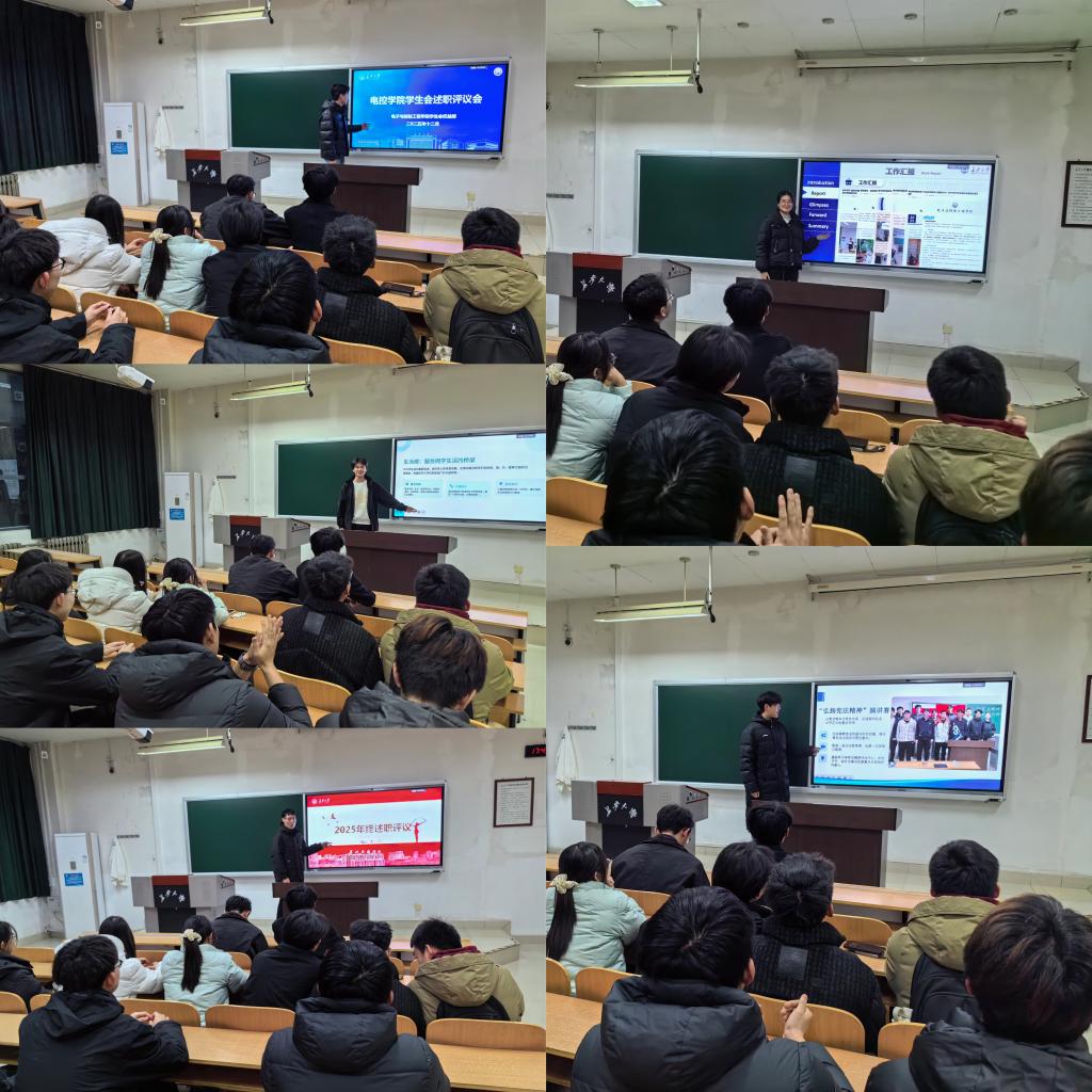 各部门围绕本学期工作进行汇报总结,明确下一阶段工作思路与务实举措。组织部扎实开展学业帮扶工作,建立学业帮扶志愿者库,举办“我为同学做实事”、“电控讲坛”、“学霸讲堂”;办公室充分发挥“能量中枢”作用,规范完成文件归档与会议组织协调;宣传部扎实做好活动跟拍与影像记录,高质量完成宣传物料策划与设计;生活部高效落实物资采购与报销工作,持续打造“宿舍文化节”等品牌活动;权益部依托线上平台“电量满满权小益”及时回应同学诉求,举办“提案大赛”、“提案培训”,拓宽权益服务渠道,营造温暖贴心的校园氛围。