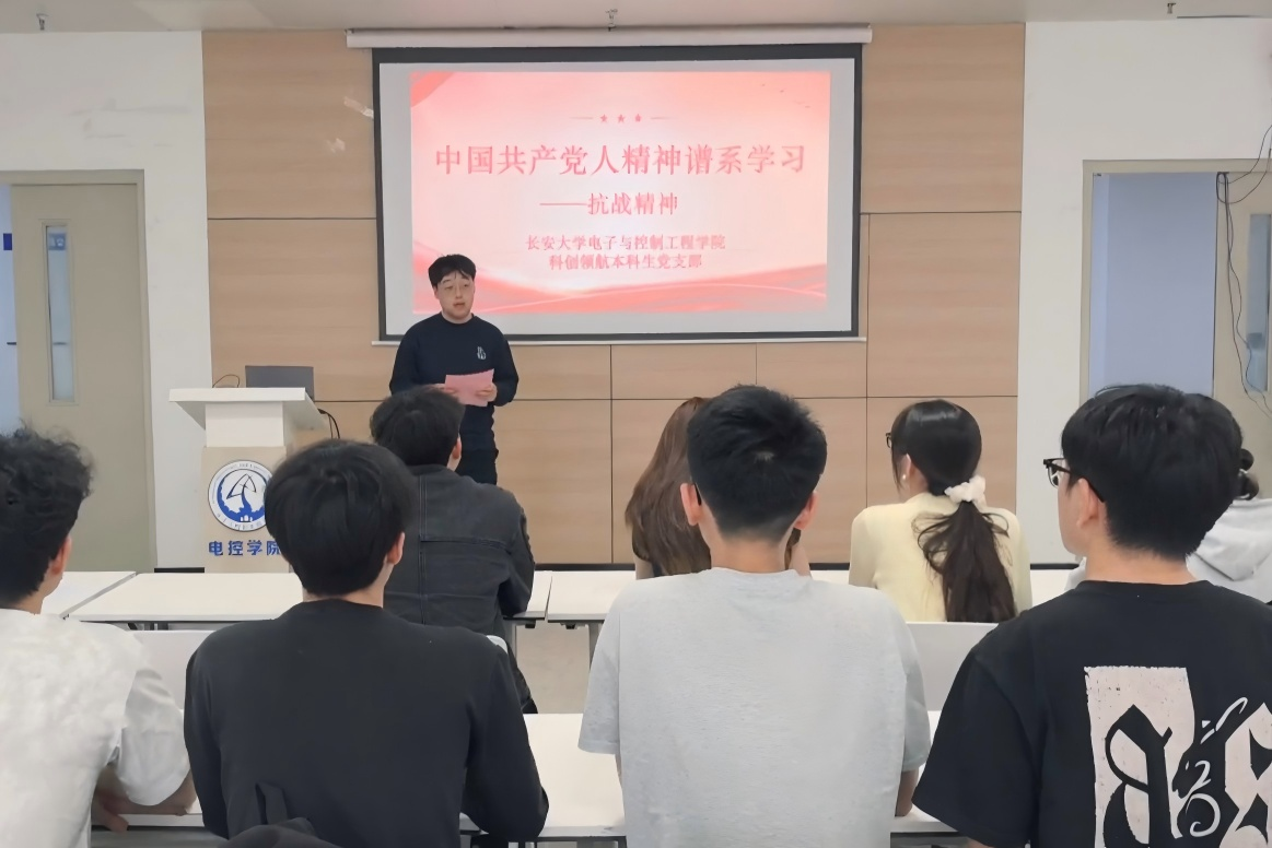 4月14日,科创领航本科生党支部在北校区明德园智通大厦216室开展“中国共产党人精神谱系”——抗战精神专题学习活动。本次活动旨在重温中华民族不屈不挠的抗争历史,深刻领悟伟大抗战精神的丰富内涵与时代价值。支部书记李慧、副书记孙超及全体学生党员参加。