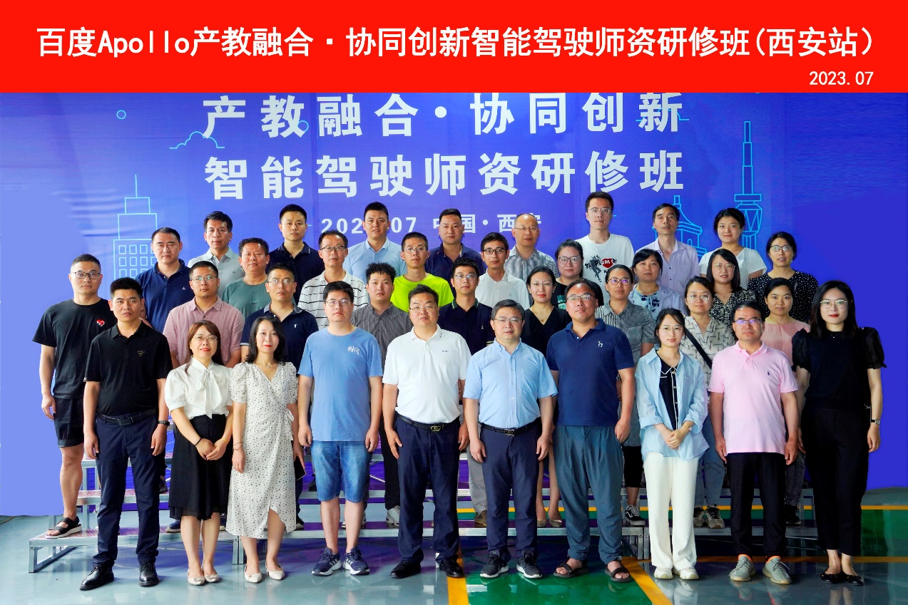 主办的“产教融合·协同创新”智能驾驶师资研修班(西安站)顺利开班。本次研修班由北京百度网讯科技有限公司、阿波罗智能技术(北京)有限公司承办,协办单位陕西天益教育科技有限公司给予了大力支持。研修班吸引了全国近60