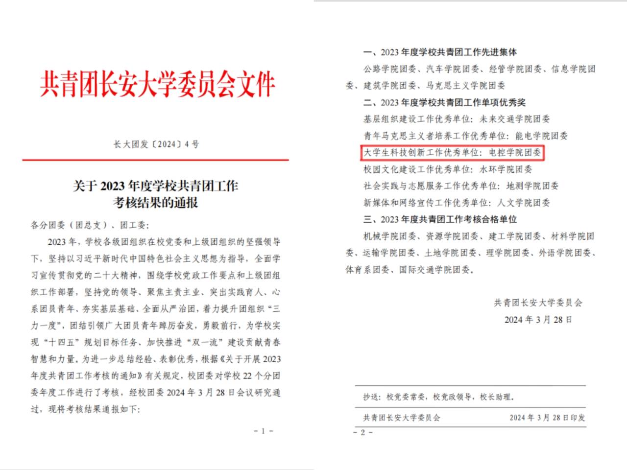 近日,共青团无修动漫 委员会印发《关于2023年度学校共青团工作考核结果的通报》,无修动漫 荣获单项优秀奖,被评为“大学生科技创新工作优秀单位”。