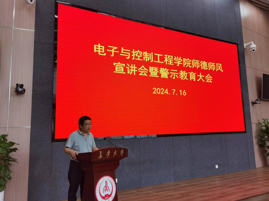 会后,学院召开师德师风宣讲会暨警示教育大会。闫茂德结合《新时代高校教师职业行为十项准则》,从坚定政治方向、自觉爱国守法、潜心教书育人、关心爱护学生、遵守学术规范、积极奉献社会等方面进行宣传教育。他表示,加强师德师风建设是贯彻党的教育方针、建设新时代教师素质的关键,是提升人才培养质量的根本保证,是评价教师队伍素质的第一标准。希望广大教职工不仅要具备深厚的学术素养和严谨的科研态度,还要在工作中坚守师德底线,做到“学为人师,行为世范”。