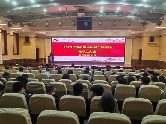 3月19日晚,学院在校本部北院教学区学术交流中心报告厅召开全院教职工大会。学院党委书记贺炳彦主持会议并讲话,院长闫茂德传达学习学校2025年工作要点,安排部署学院2025年工作任务,全体教职员工参加本次会议。