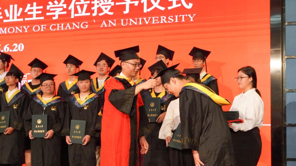 2025届毕业生学位授予仪式在北校区北辰楼会议中心二层报告厅隆重举行。学院党委书记贺炳彦,院长闫茂德,院党委副书记、副院长、纪委书记李勉,副院长龚贤武、路庆昌、惠飞,各系部(中心)主任、教师代表、全体辅导员、2025届毕业生参加了仪式。仪式由学院党委副书记高婷婷主持。