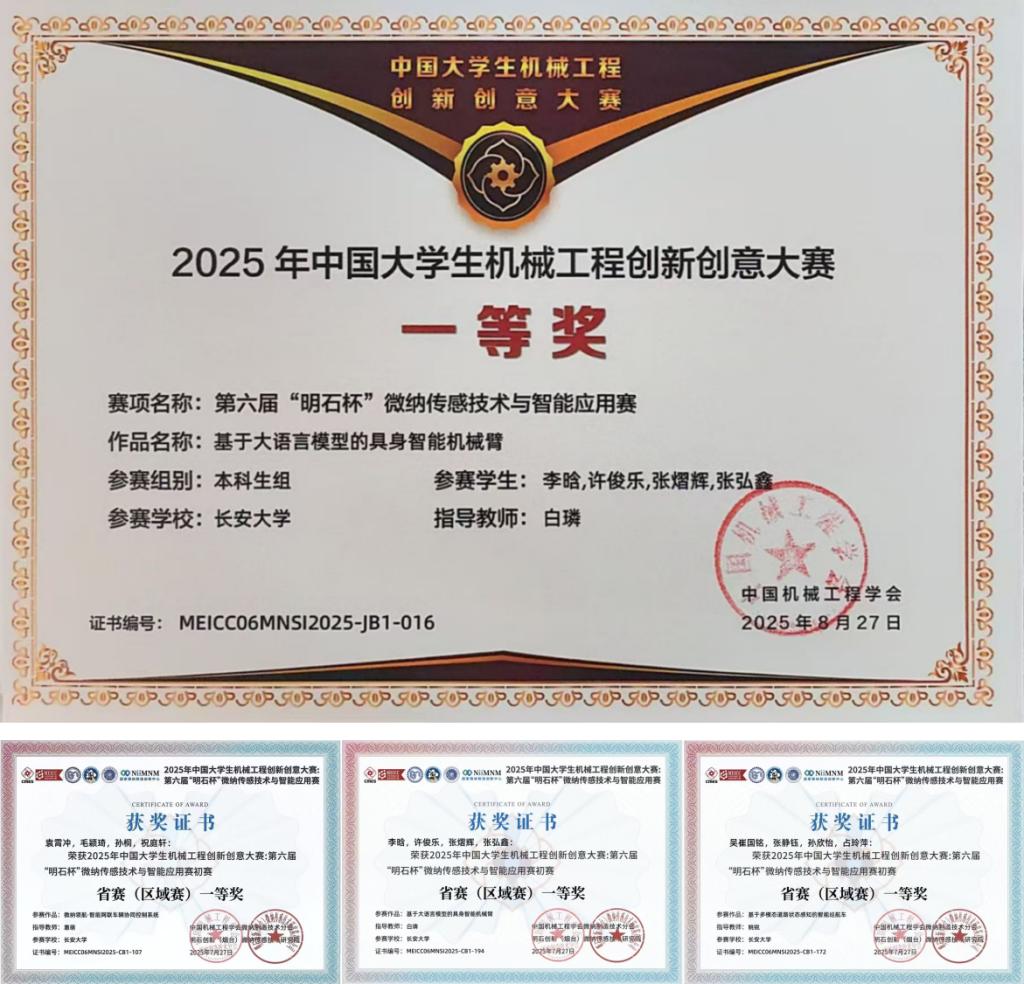 白璘副教授指导的李晗、许俊乐、张熠辉、张弘鑫团队以“基于大模型的具身智能机械臂”为主题开发了一款集成了大语言模型的智能机械臂。作品围绕人工智能技术发展现状调研、关键技术攻关和硬件系统搭建,形成了完整的实施路径,并提出了大语言模型前端部署等关键问题的解决方案。凭借突出的技术创新与工程实现能力,团队赢得了专家评委的一致高度评价,最终斩获全国一等奖。无修动漫